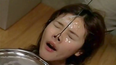 Desirous Japanese babe has her face soaked in nut butter at a raunchy bukkake action